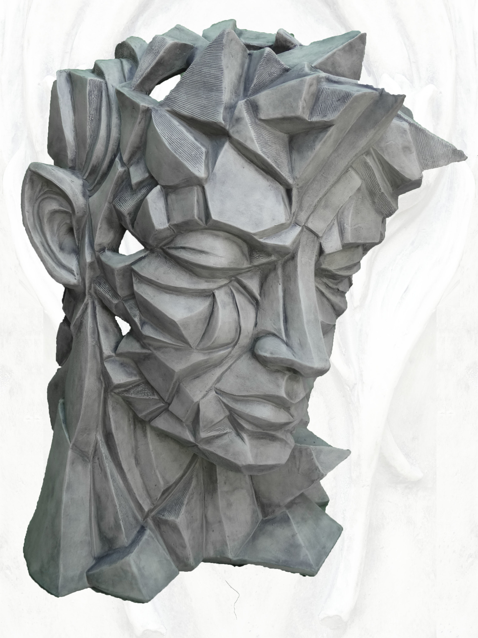 Prachtig vormgegeven massief mannenhoofd, van hoogwaardige gietsteen, gemaakt van het allerbeste gietsteen. Modern en figuratief hoekig vormgegeven. Dit beeld zal ik elke moderne tuin een smaakvol stuk decoratie zijn.