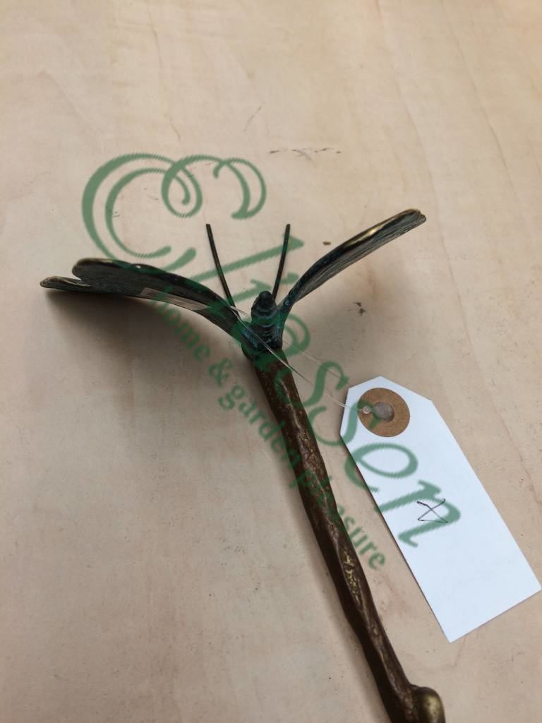 Mooi beeld van een vlinder op een deelbare stok van hoogwaardig brons met een minimale kopergehalte van 75% waardoor een zeer lange levensduur gegarandeerd is.