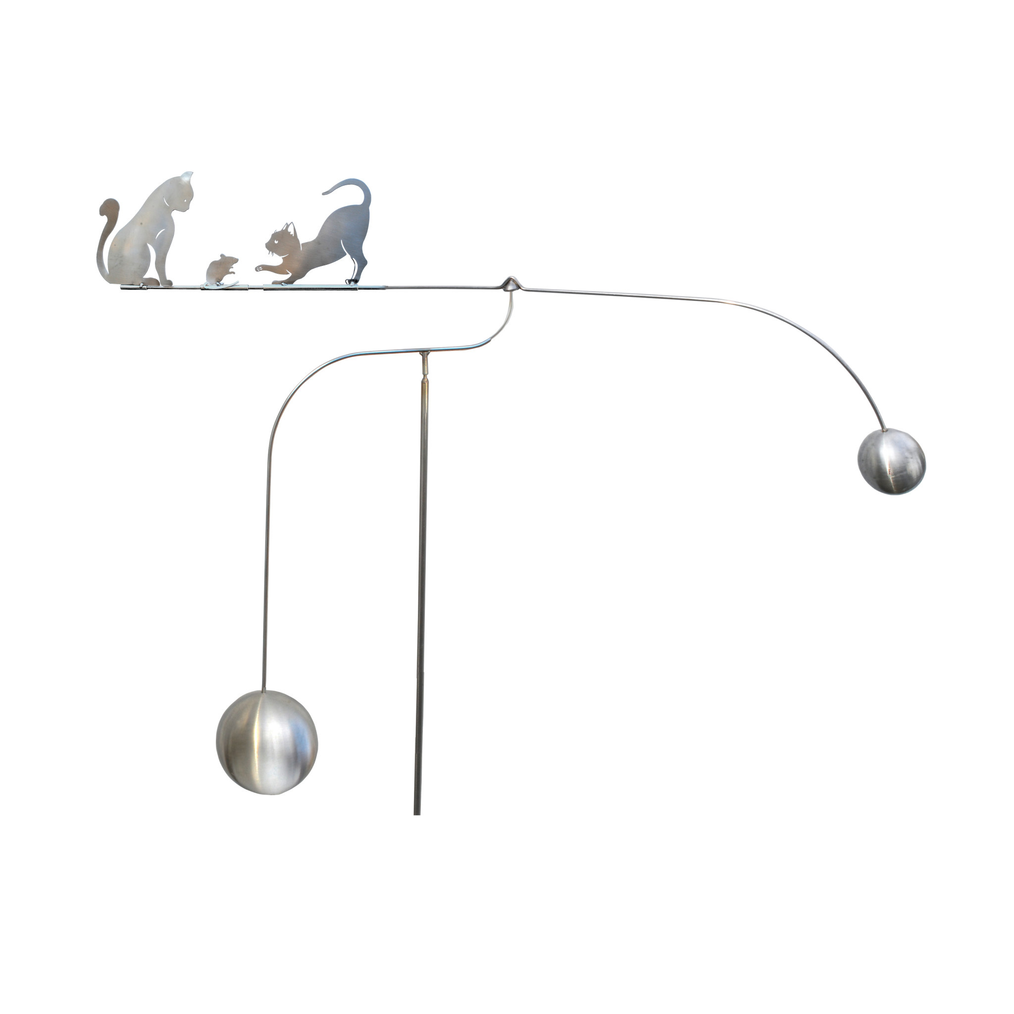 Schitterend afgewerkte rvs tuinsteker in de uitvoering van een balans of tuimelaar met een kat en een muis die u overal in de tuin kunt steken.