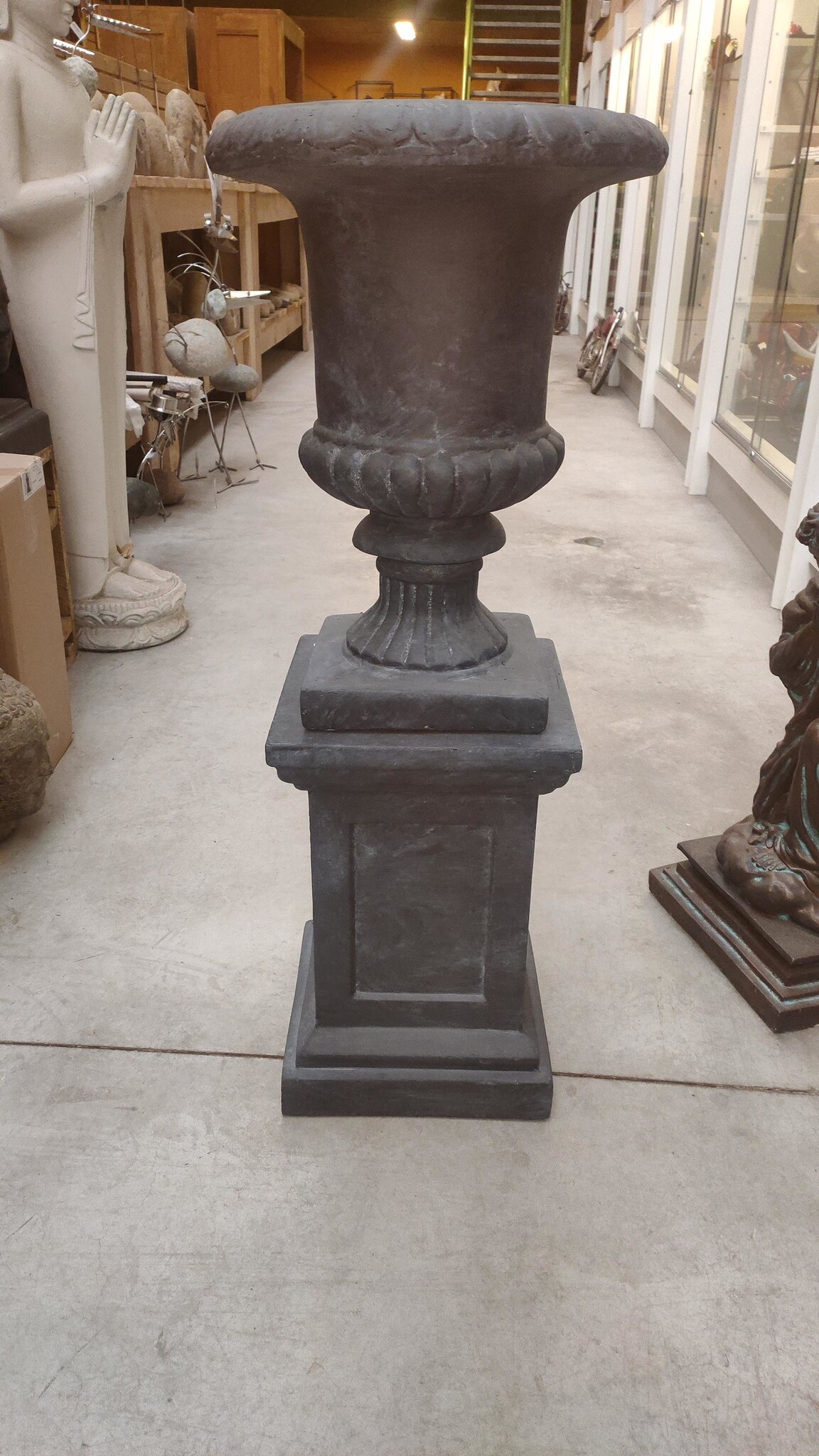 U wenst deze vaas op de bijpassende sokkel? Dan kunt u in de zoekbalk artikelnummer 125434 invoeren, dan kunt u de juiste sokkel erbij bestellen. Deze sokkel kunt u ook aanklikken hier onderaan deze pagina. De totaal hoogte, dus met sokkel wordt dan 115cm.