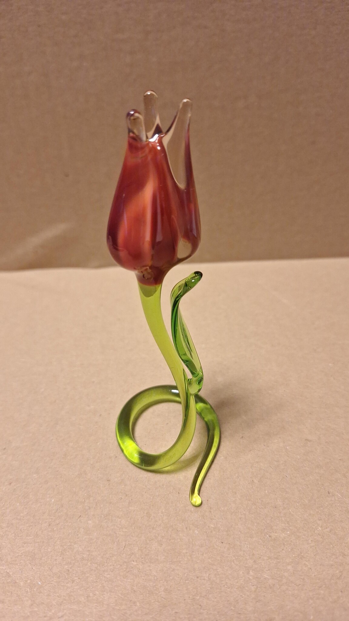 Bent u een liefhebber van glazen voorwerpen?, dan zult U deze rode tulp ook wel mooi vinden.