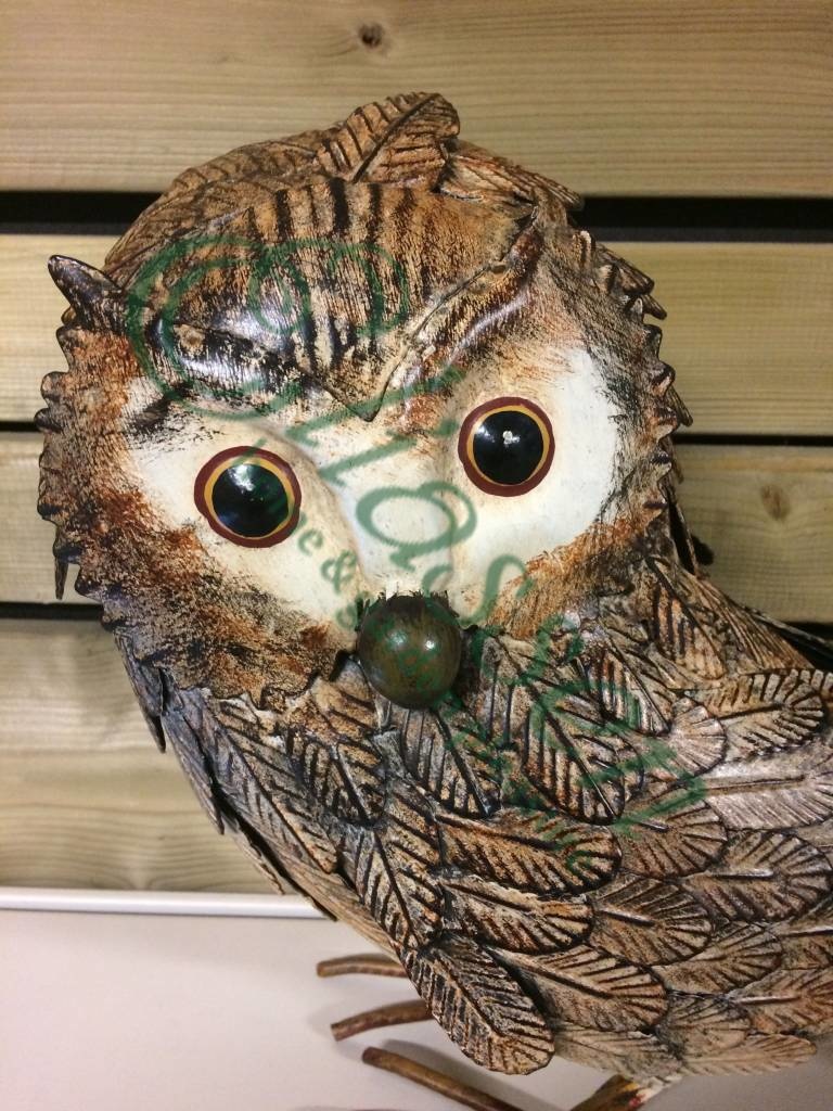 Schitterend afgewerkte metalen figuur van een uil, in mooie kleuren. Dit metalen dieren figuur is een sierraad in huis of tuin of zeer leuk om kado te doen. Helemaal met de hand gemaakt en geverfd.