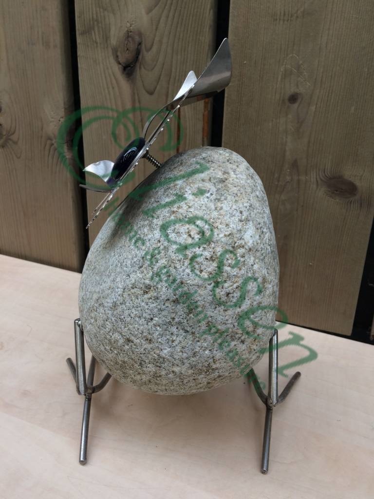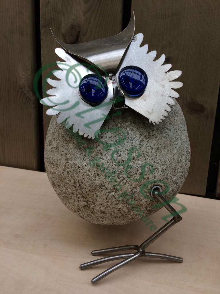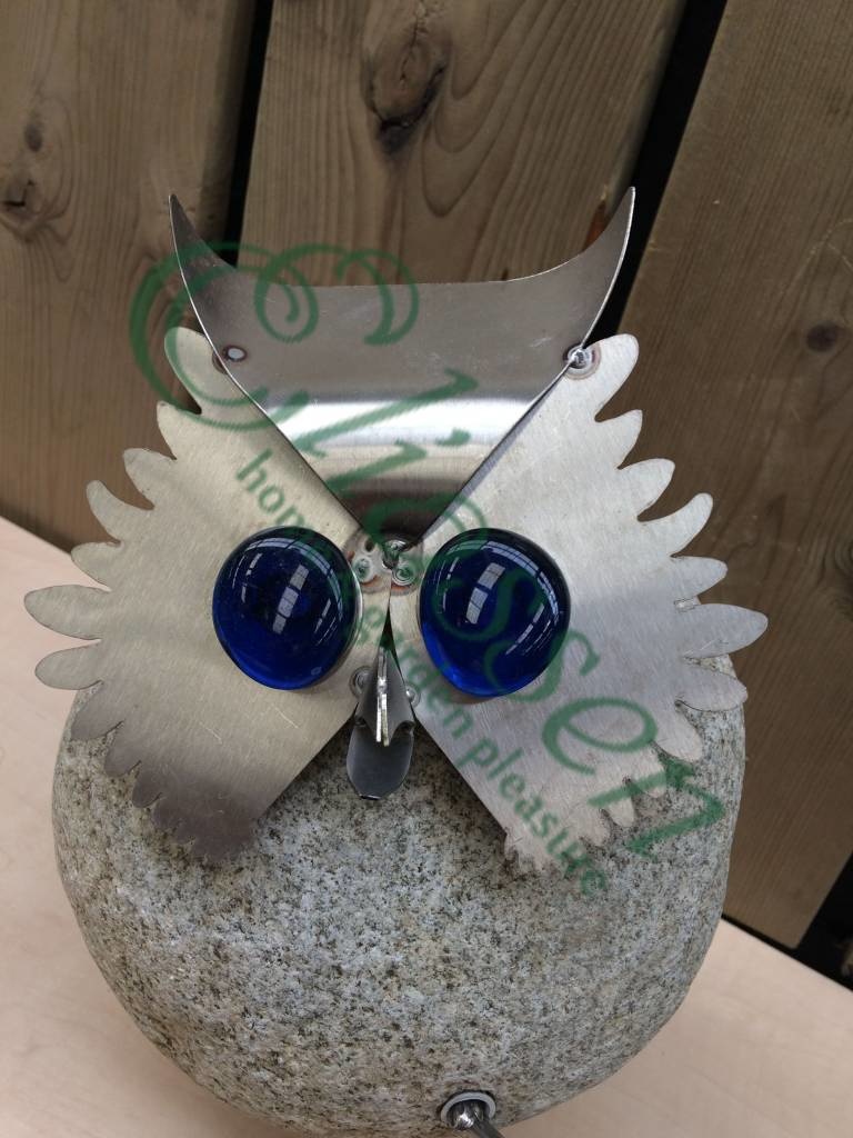 Leuk in de tuin maar ook binnenshuis, deze exclusieve figuur van een uil met glasogen, opzijkijkend, met een natuurkei als lijf. Stevig staand, met een levenslange levensduur bij normale omstandigheden.Geheel is ambachtelijk gemaakt van RVS. Doordat het handwerk is zullen er altijd kleine verschillen in elk exemplaar kunnen bestaan met de foto, Ook de kei kan anders zijn qua kleur en vorm, hierop kan niet gereclameerd worden.