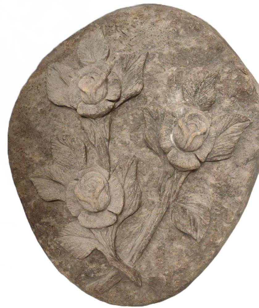 Dierenurn, met prachtige uitgehakte rozen op steen, met de hand gemaakt op een zwerfkei van ca 30-35cm breedte. Voorzien van klein roestvrijstalen busje van 45x30mm met schroef dekseltje, voor het vochtbestendig opslaan van as, die u in de onderkant kunt bevestigen, voor de opslag as voor uw geliefde overleden huisdiertje. Eerst wordt de afbeelding op de kei getekend, waarna met een beiteltje de lijnen en sommige oppervlakken uitgehakt worden, zodat er diepte verschillen ontstaan. De hoogst liggende delen worden daarna zorgvuldig gepolijst. Een enorme klus, maar het resultaat mag er dan zijn.
