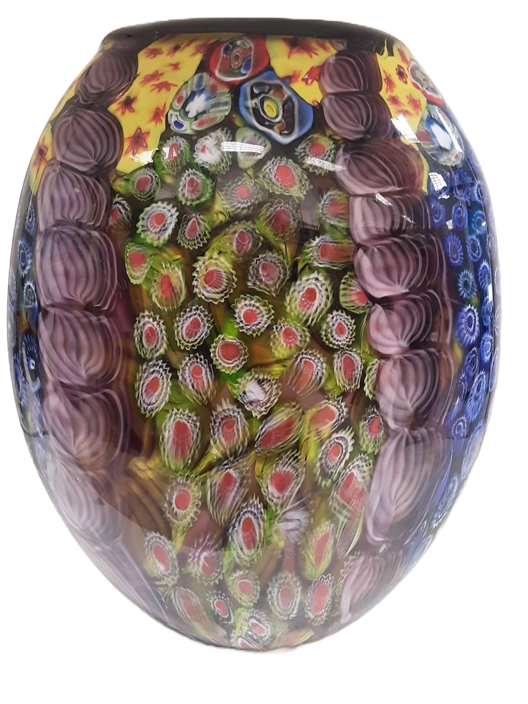 Uniek met de mond geblazen fantasierijke vaas met de afmeting 31x38cm hoog.