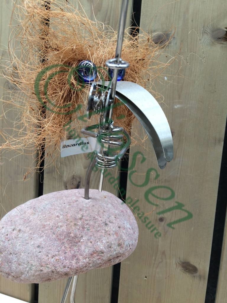 Leuk in de tuin maar ook binnenshuis, deze exclusieve figuur van een vissende vogel met pruikje, met een natuurkei als lijf. Stevig staand, met een levenslange levensduur bij normale omstandigheden.Geheel is ambachtelijk gemaakt van rvs. Doordat het handwerk is zullen er altijd kleine verschillen in elk exemplaar kunnen bestaan met de foto, Ook de kei kan anders zijn qua kleur en vorm, hierop kan niet gereclameerd worden.