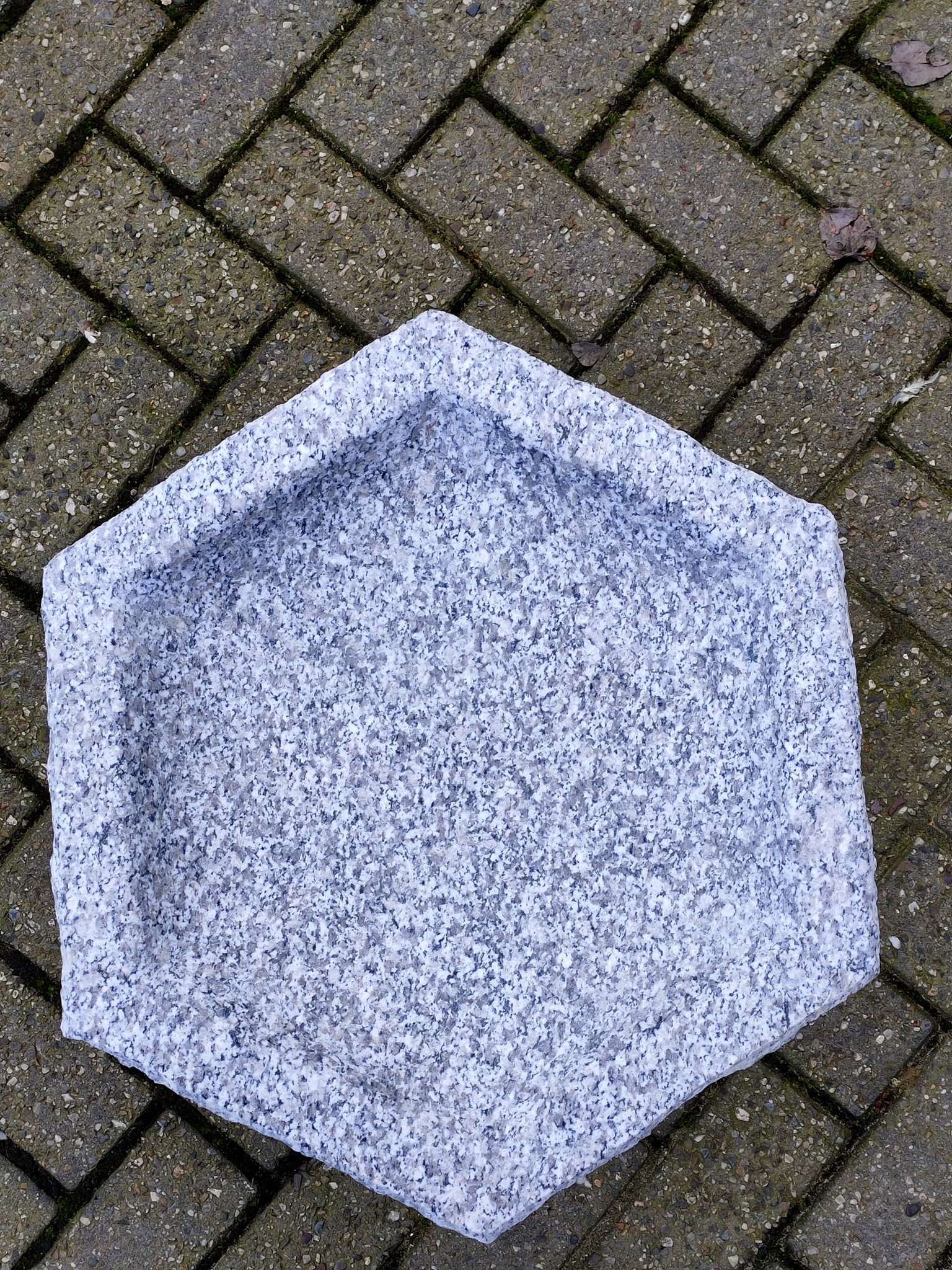 Leuk om te zien in de tuin; badderende en drinkende vogels… een vogeldrink badje is dan een uitkomst, en is ook een sierraad in uw tuin. Dit grote zeskante model gaat vogeldrinkschaal gaat een leven lang mee omdat het is gemaakt van grijs graniet. Doordat het een natuurproduct is, kan de foto enigszins afwijken van de drinkschaal die u ontvangt. In graniet kunnen van nature lichte kleurverschillen en andere oneffenheden zichtbaar zijn, dit is normaal, hierop kan niet gereclameerd worden.