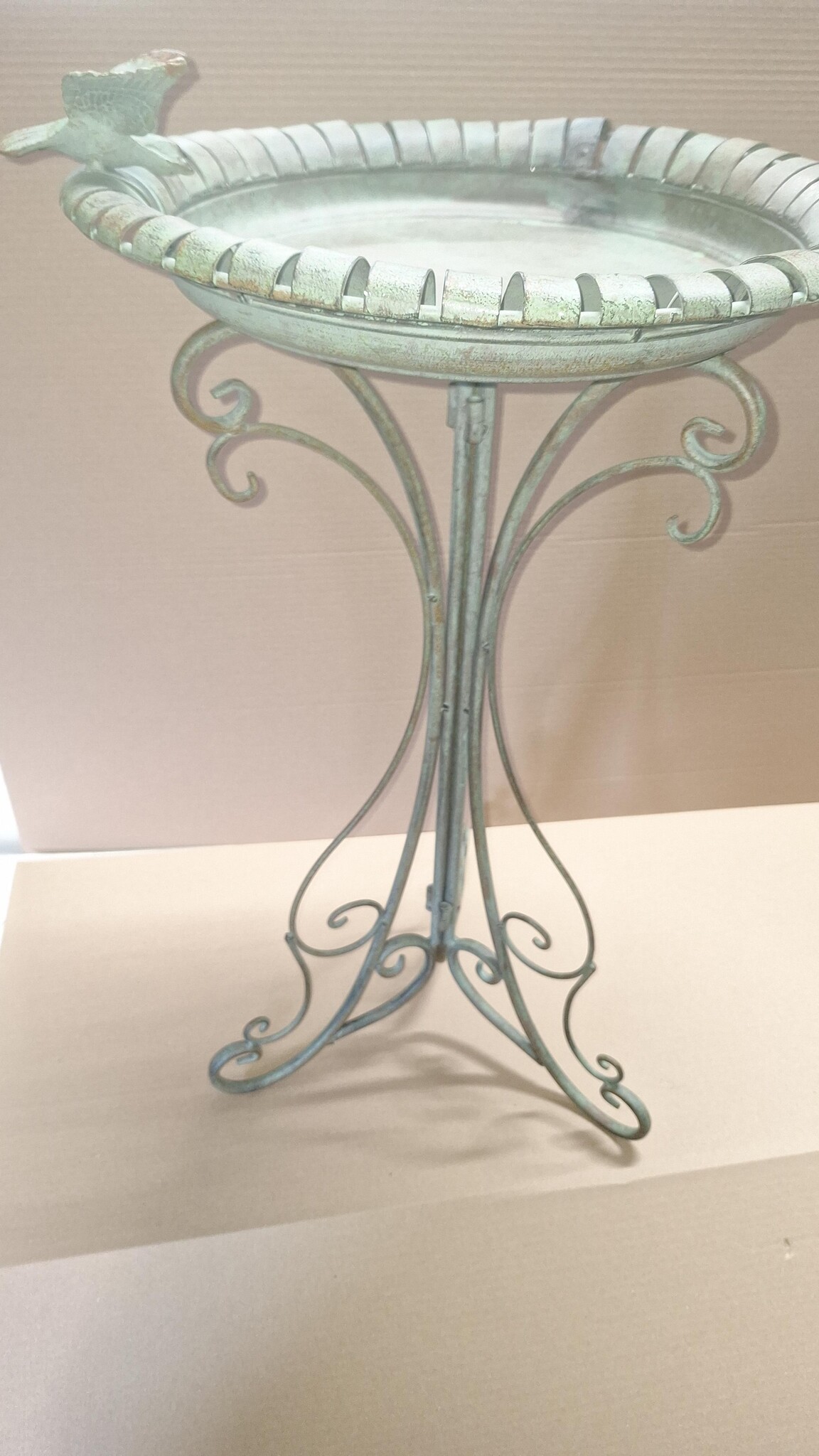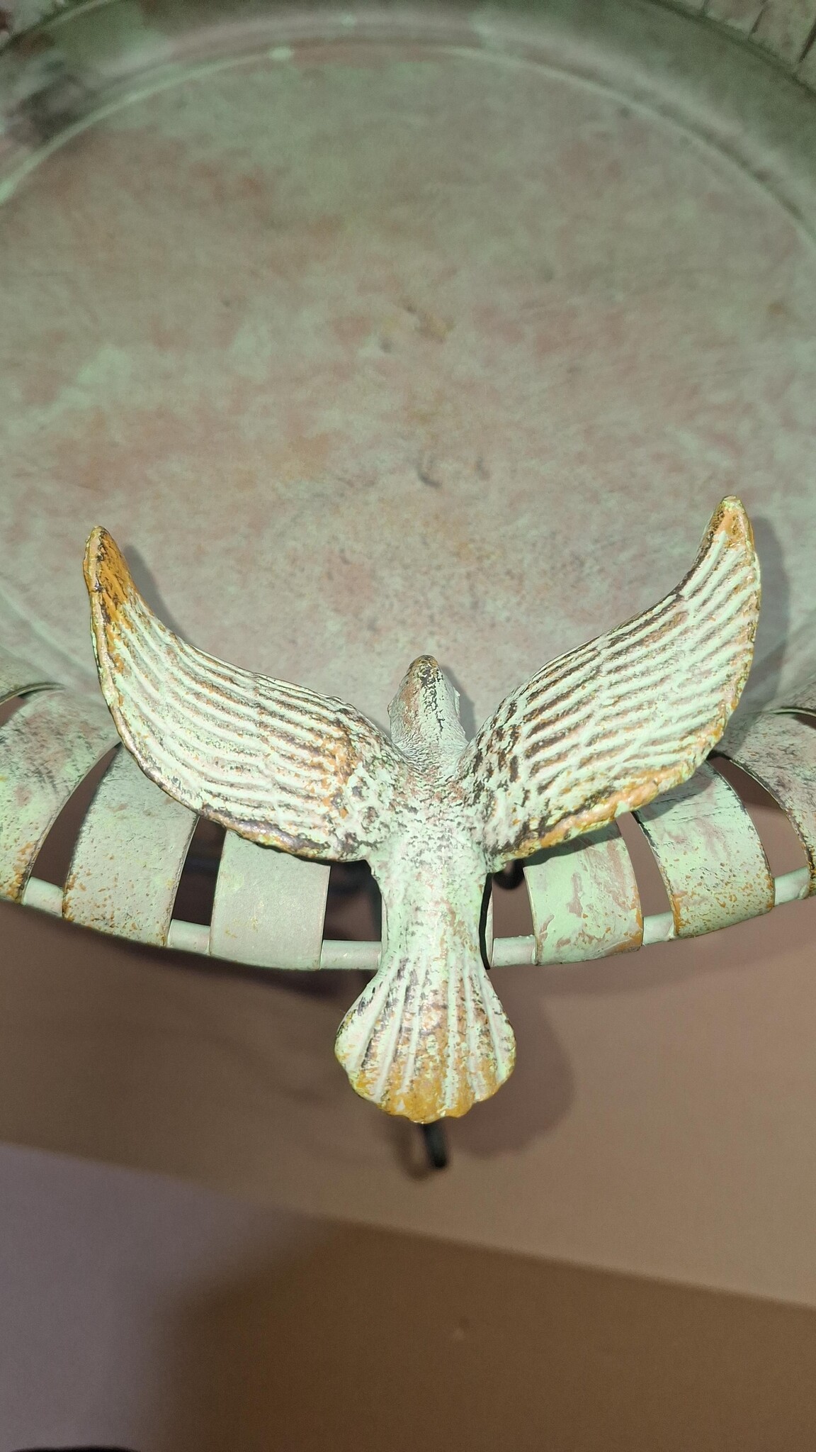Wat is er nog mooier dan vogels te zien badderen, drinken en eten in uw vogelschaal. Eindeloos zullen vogels op uw water of voer afkomen. Deze vogelschaal met een vogeltje met gespreide vleugels is gemaakt van ijzer, en daarna gecoat in antiek groene kleur. Deze vogelvoeder schaal is 2-delig, u hoeft alleen de poten onder de schaal vast te schroeven.