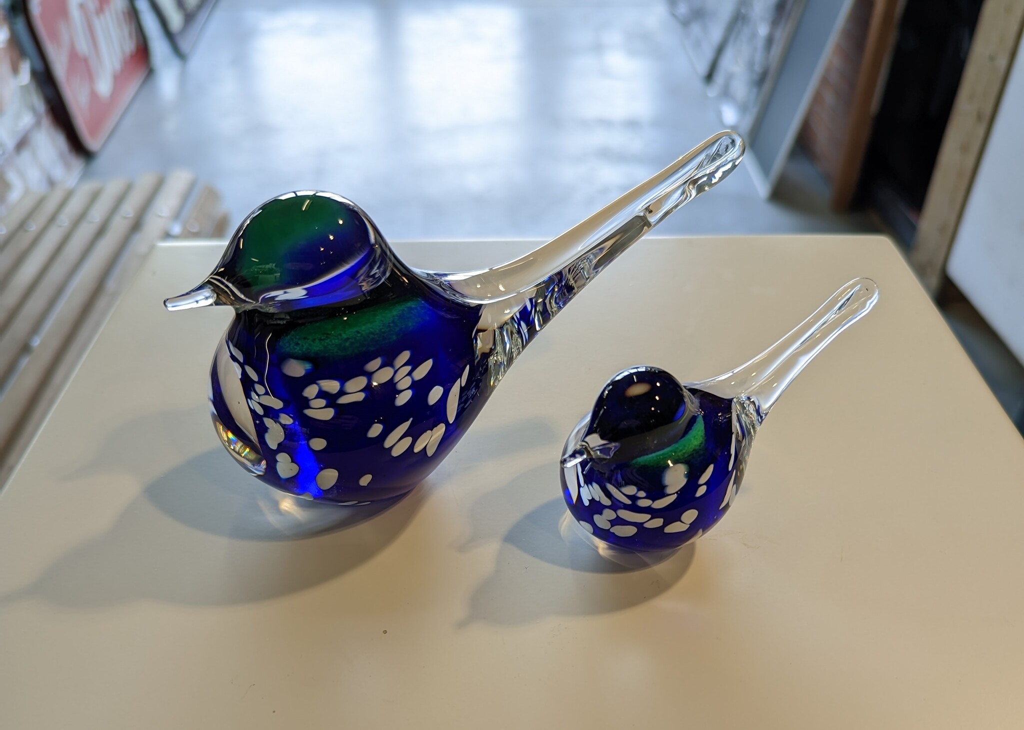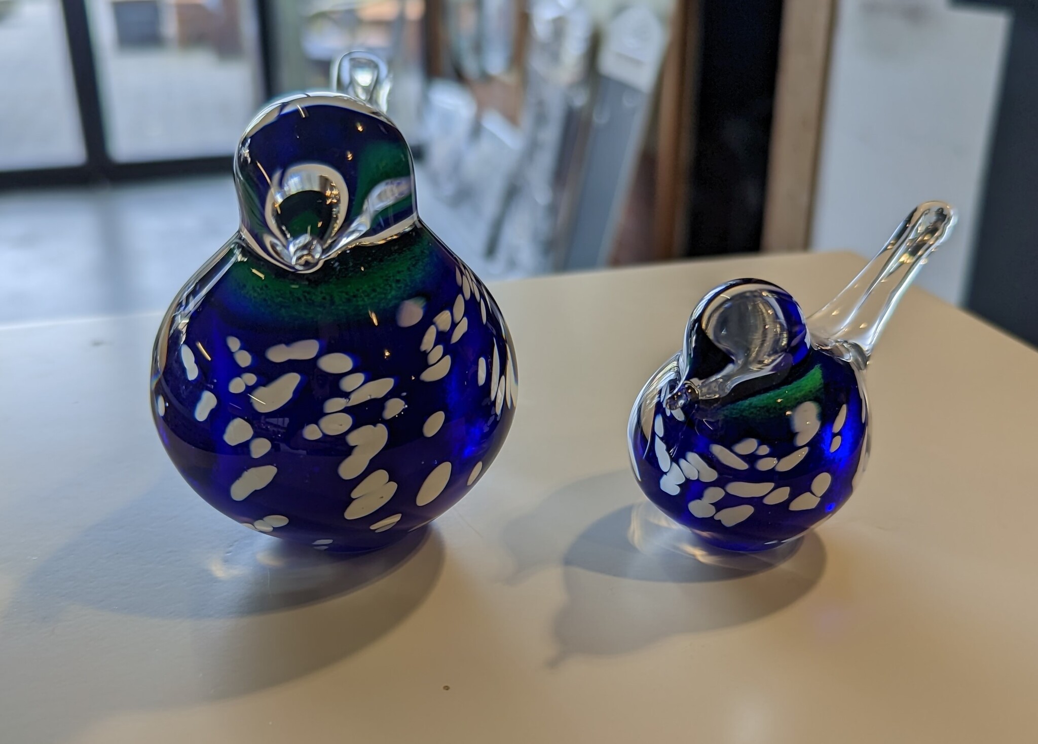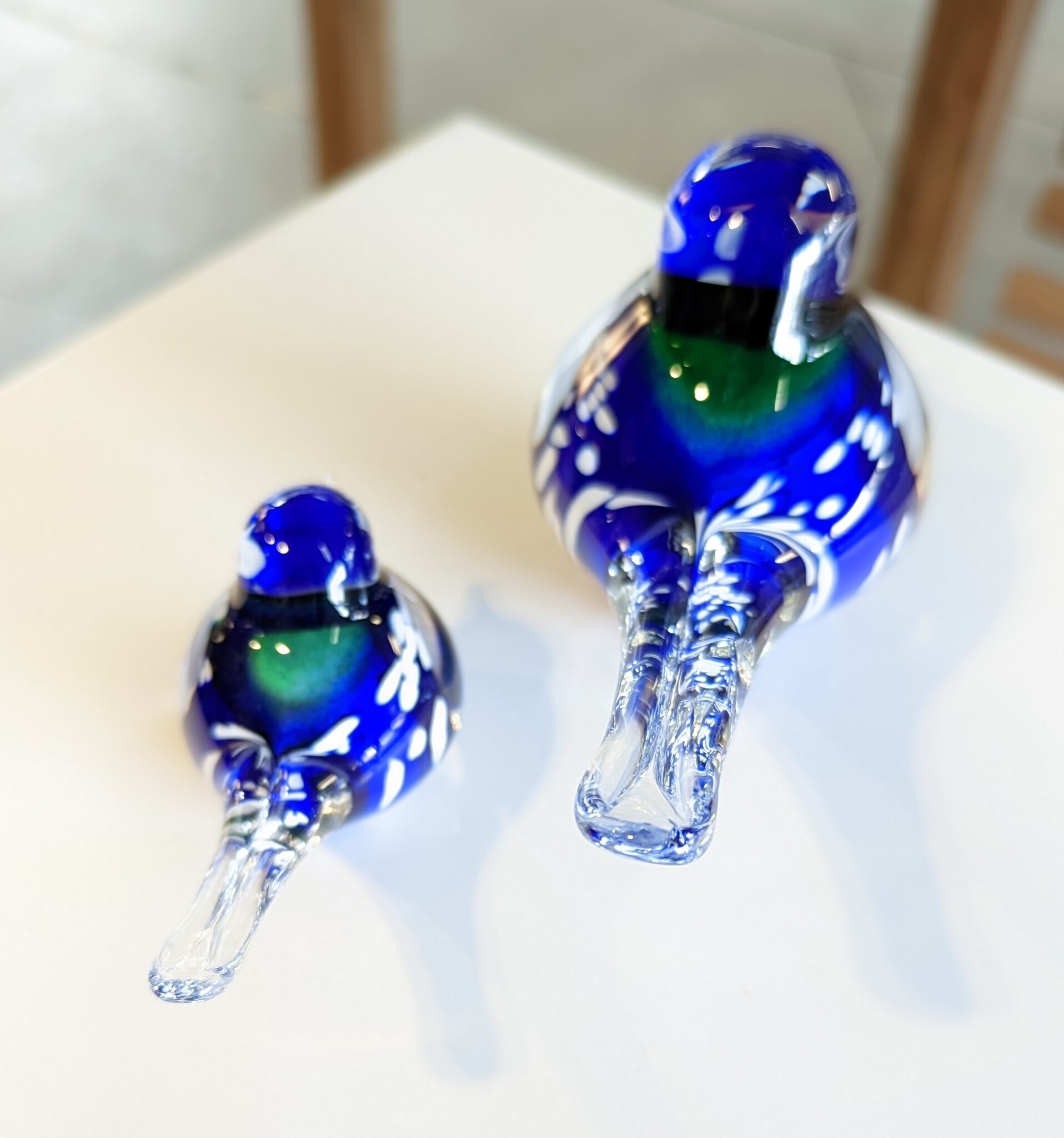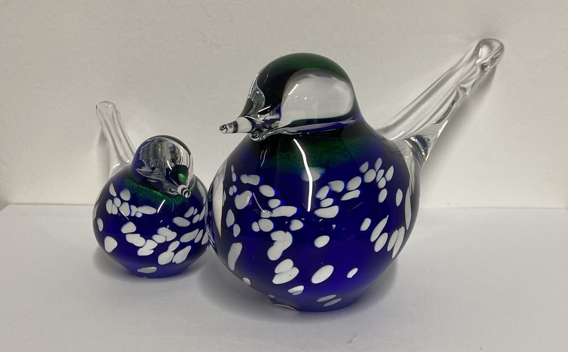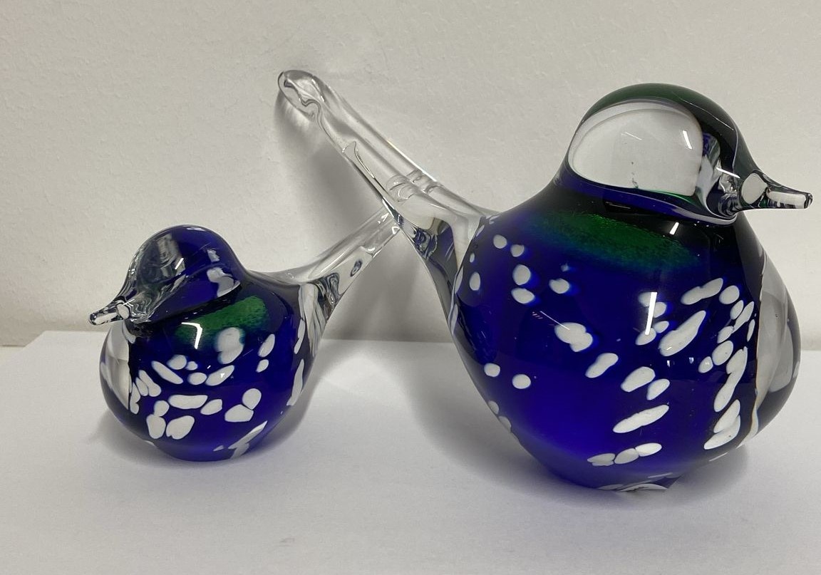 Vogelsetje glas blauwwit 12 en 19cm