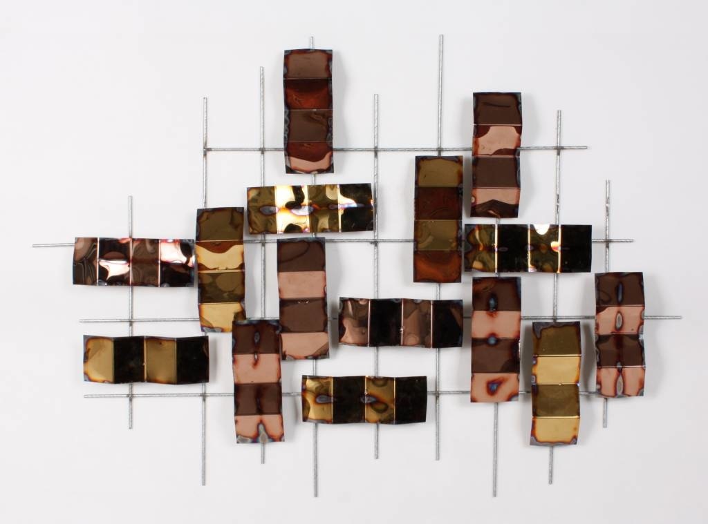 Dit 3-dimensionale metalen muurdecoratie met rechthoek vormen kleedt elk modern interieur of werkplek prachtig aan. Dit sfeervolle en tijdloze stuk wanddecoratie zal een ware blikvanger zijn. Geheel handwerk met gepolijste delen waardoor het geheel een aparte lichtspeling teweeg brengt.
