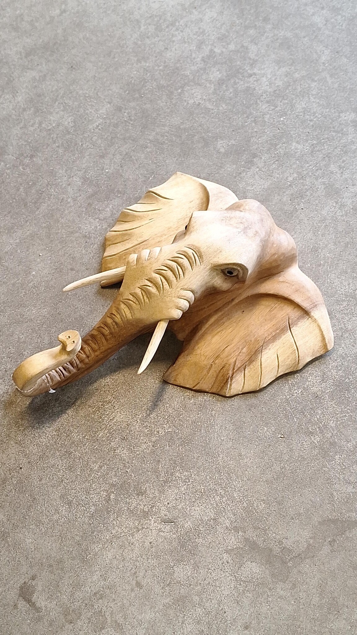 Prachtig handgesneden olifanten kop voor tegen de muur