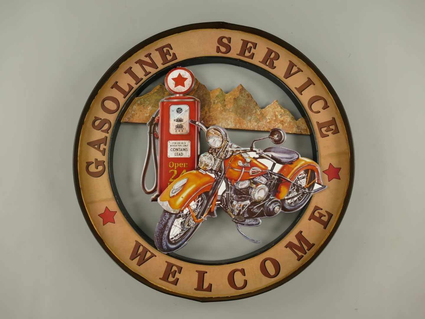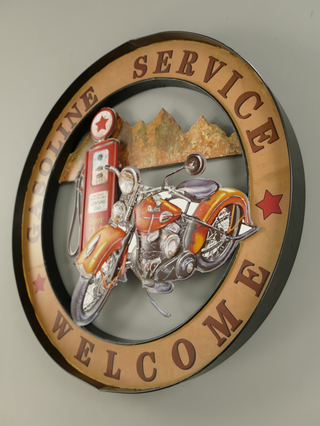 Dit stuk metalen muurdecoratie in retro stijl is een leuke sfeermaker.