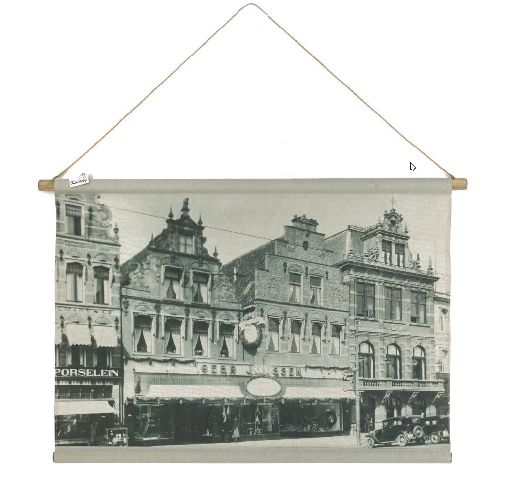 Deze wandkaart van een straat is een oude afbeelding van een oud origineel en is een betaalbaar stuk muurdecoratie voor elk interieur. Deze schoolplaat is gemaakt van echt linnen, geen papier dus. De maat van deze oprolbare wanddecoratie is 90x62cm.
