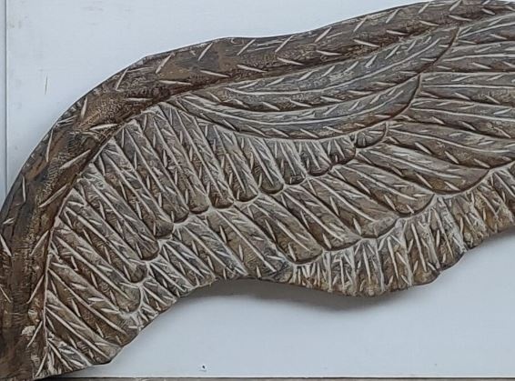 Dit stuk muurdecoratie is een lust voor het oog. Dit zeer grote model van 2 vleugel is maar liefst 340cm breed, en is helemaal met de hand uitgesneden.
