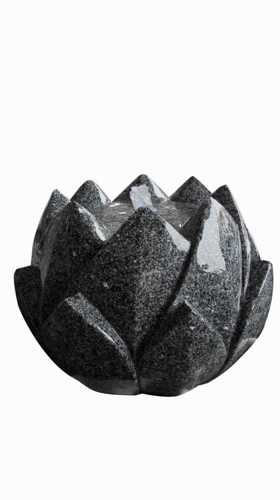 Waterfontein bloem in eigen beheer gemaakt en ontwikkeld, nergens anders te koop. Bloemmodel, zeer arbeidsintensief om het te maken. Gemaakt van gepolijst basalt. Kunstzinnig object met een zeer kleine oplage. Maat is 50x50cm. Staat ook zeer mooi bij plaatsing in een vijver of in een moderne vijverbak.