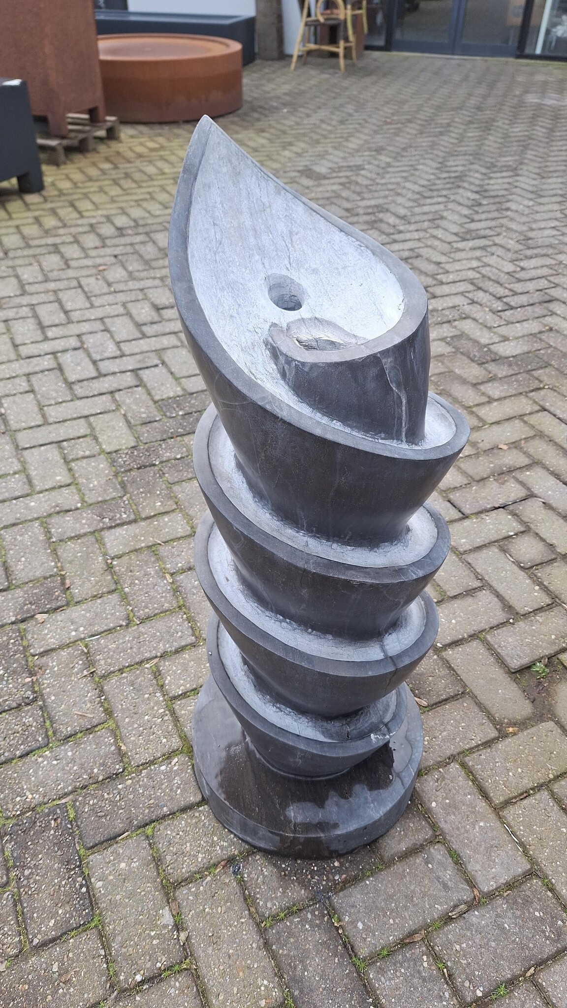 Dit model is gemaakt om het water heel subtiel rondom naar beneden te laten lopen, waaraan vogeltjes kunnen drinken.