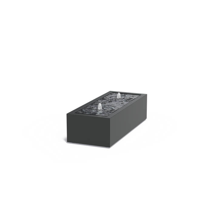 Zeer mooie ambachtelijk gemaakte en degelijk afgewerkte watertafel van 3mm dik aluminium. Aluminium geeft niet af, is licht van gewicht en roest niet. Op de bovenkant vormt het water een 2cm dikke waterlaag, welke subtiel van de randen afstroomt. Er kunnen eventueel ook steentjes op het plateau gestrooid worden als men dat wenst.