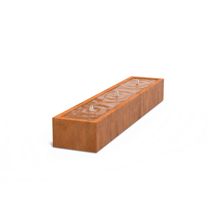 Watertafel Cortenstaal Rechthoek 3 fonteinen 300x60x40cm