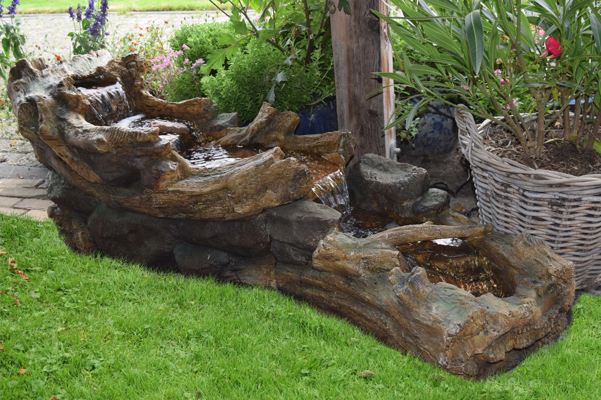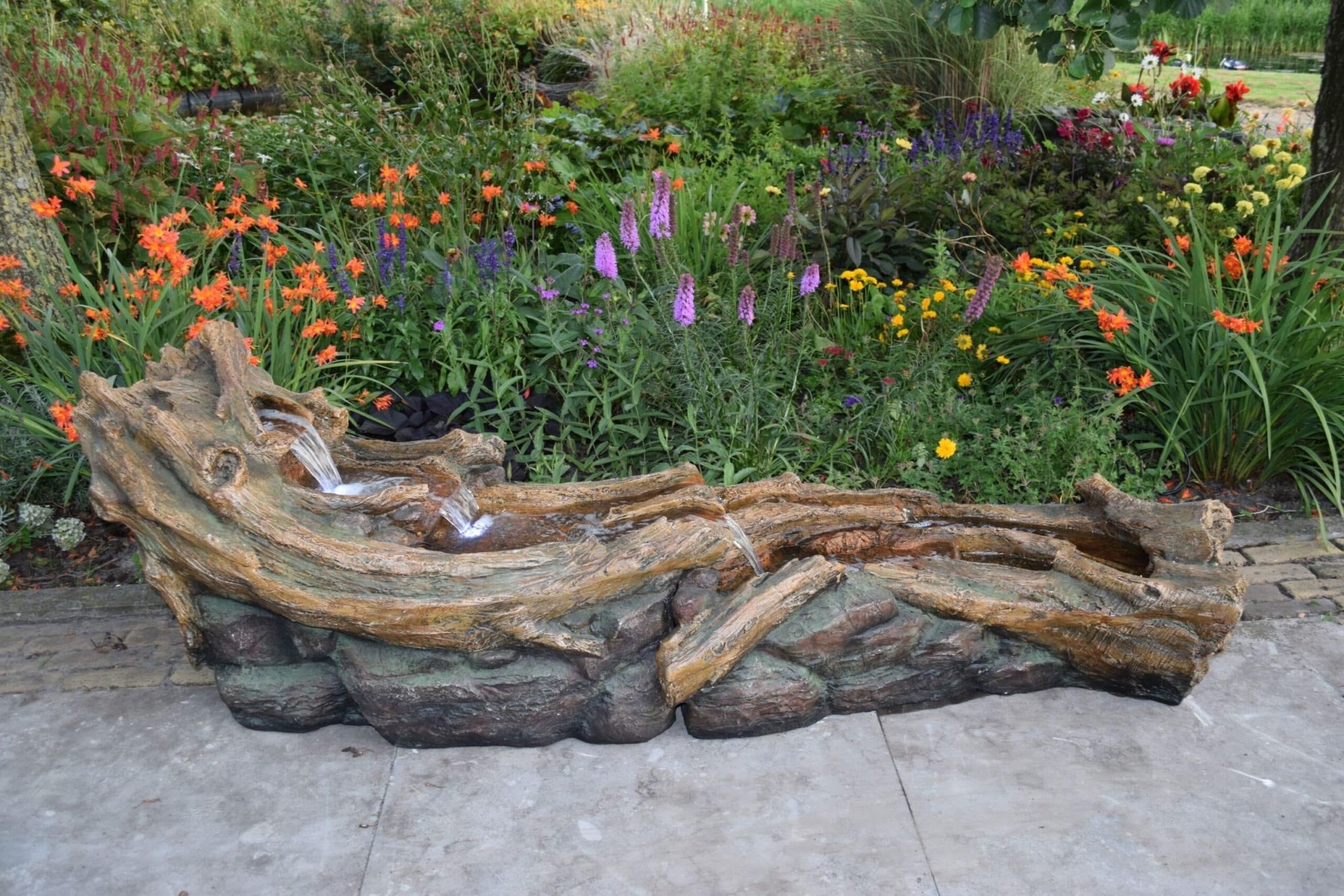 Een echte blikvanger voor in uw tuin, huis of bedrijf, deze indrukwekkende nagemaakte rotsige waterloop met natuurlijke uitstraling. Vooral tussen de planten is deze waterloop een prachtig tuinornament. Deze 150cm lange waterval wordt prachtig verlicht door middel van leds op 4 plaatsen, wat is het donker voor een prachtig schouwspel zorgt.