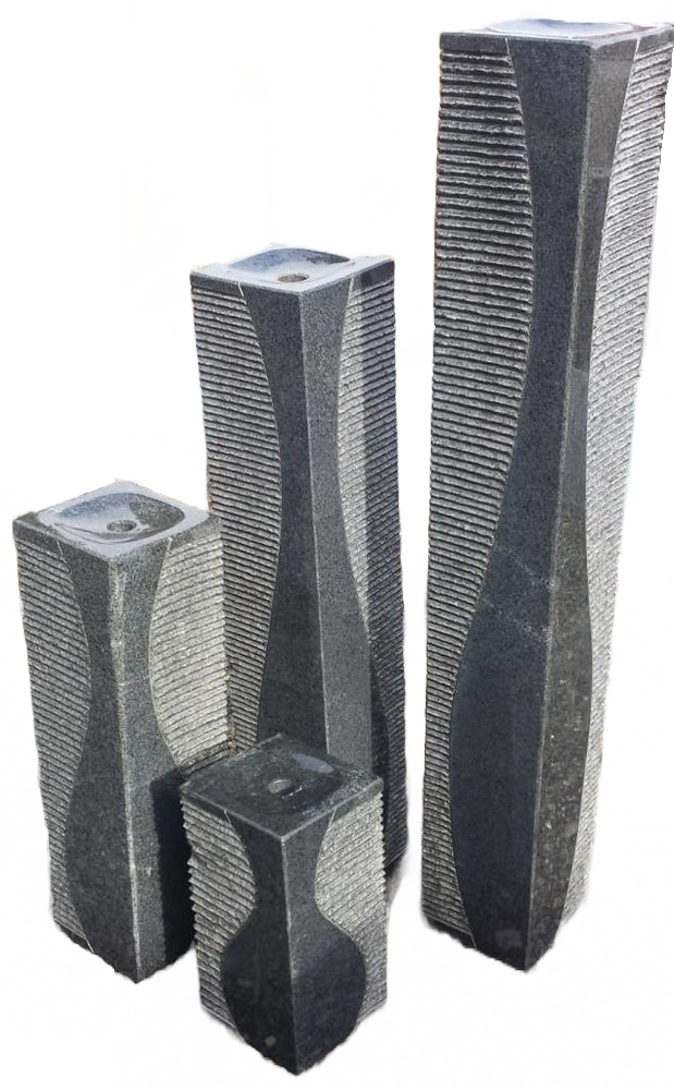 Waterzuilen van graniet in eigen beheer gemaakt en ontwikkeld, nergens anders te koop! Gemaakt van (deels)gepolijst graniet, wordt donkerder als er water er overheen loopt, blijft mooi, dit in tegenstelling tot hardsteen, wat onderhoud nodig heeft. In de zuilen kan een ledlampje geplaatst worden.