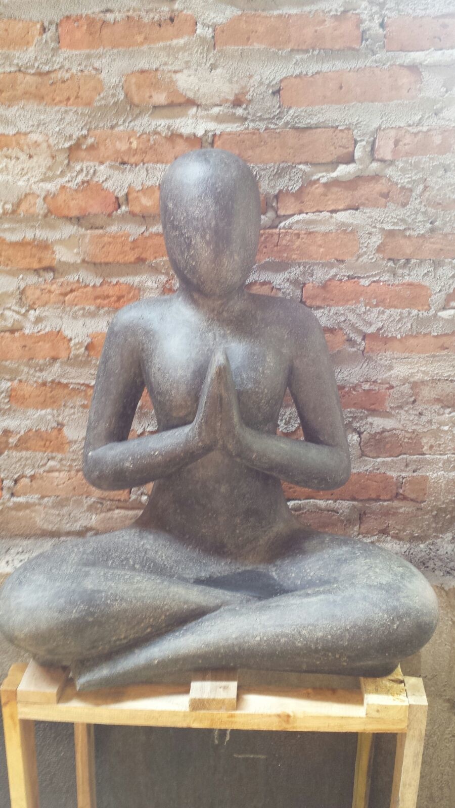 Dit byzondere fraaie beeld van een figuratief gevormd persoon die Yoga beoefent in de Namaskar groet houding, is te gebruiken als tuinbeeld maar zeker ook mooi in elk huis of gebouw.