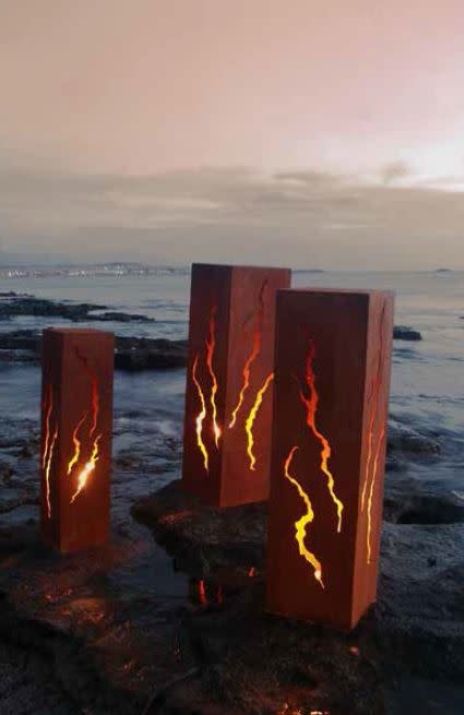 Een aparte sfeermaker in uw tuin, deze verlichte zuil toch wel noemen. In deze sokkel zijn aan 2 kanten zogenaamde scheuren gemaakt, waardoor in het donker warmwit licht schijnt. Deze kolom is gemaakt van 2mm dik onbehandeld ijzer, wat een prachtige en tijdloze (roest)bruine kleur geeft.