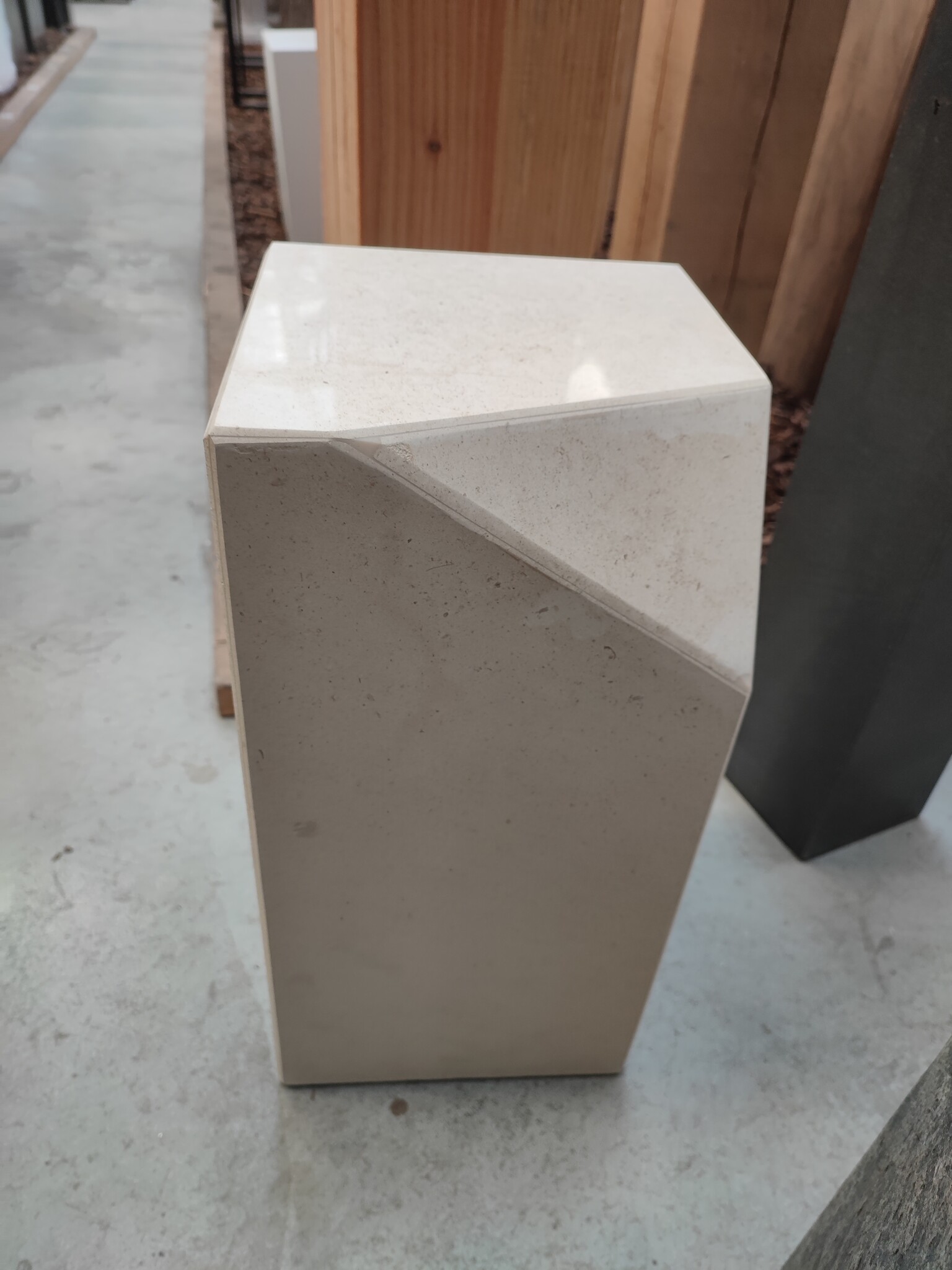 Stenen sokkel kopen? Deze sokkel is van marmer, helemaal gepolijst. Met een schuine hoek aan de bovenkant, voor een prachtige speelse uitstraling in combinatie met een modern beeld. Robuust geheel, staat zeer stevig. Deze sokkel is voorzien van een rubber onderkant, zodat vloeren niet beschadigd worden.